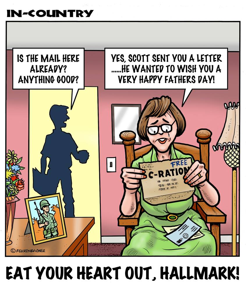 Phil enlisted in the Army in 1965 where you served for years in Vietnam.  He became a graphic designer and has worked for the state of Oregon for 26 years.  He retired in 2003 and started the Cartoon "In-Country".  The cartoons reflect his experiences during his tour of duty in South Vietnam.